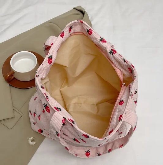 🍓 Pink Strawberry Corduroy Tote Bag 🍓